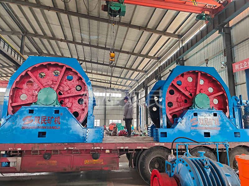 本绞车主要用于煤矿、金属矿和非金属矿竖井井筒掘进时悬吊吊盘、水泵、水管、注浆泵、风筒等掘进设备和张紧稳绳,该绞车系双钢丝绳悬吊。将减速机上的差动手把放在差动位置,若张紧稳绳,可使两根稳绳的张紧力保持相等;