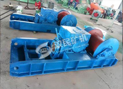 主要结构机械部分:主轴装置、减速器、联轴器、制动器、液压站、深度指示器及其传动装置、测速发电机装置、护板、护罩、护栏。辅助机械部分:司机椅子、导向轮和天轮、车槽装置。电器部分:主电机及电气拖动装置、电器控制装置、电器保护装置。电动机通过减速器驱动卷扬筒旋转,钢丝绳一端固定在卷筒上,另一端经卷筒缠绕后,通过井架天轮悬挂提升容器。随着卷筒的旋转,实现容器的上升和下放。