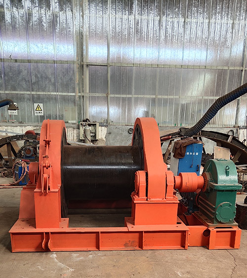 凿井绞车车结构为缠绕式,主要由主轴装置、减速器、带制动轮的弹性联轴器、工作制动器、制动器、机座、电动机等部件组成。