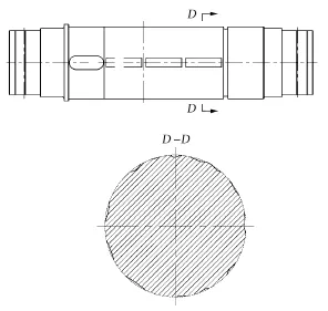2.2 天轮轴磨损与锈蚀2.2.1 故障分析 据用户反馈,唐口煤业主井的天轮装置使用中存在异响。在厂内拆掉游动轮后,发现天轮轴上游动轮配合处有锈蚀、磨损、点坑等问题,并能清楚地看到天轮轴与游动轮配合处的“分界线”,天轮轴结构如图7 所示。分析原因发现,由于天轮轴瓦润滑不良,油膜形成受阻,导致游动轮轴瓦与天轮轴之间变成了硬接触,磨损轴瓦和天轮轴,进而出现异响。
