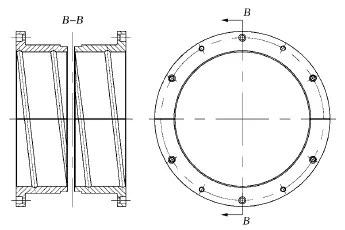 (3) 改进轴瓦加工工艺,去掉原有两瓣轴瓦之间的缝隙,避免天轮在正反方向运转时对固定螺栓的冲击。