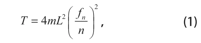 式中:m 为钢丝绳单位长度质量,kg/m;L 为钢丝绳长度,m;n 为自振频率的阶数;fn 为钢丝绳第 n 阶自振频率,Hz。