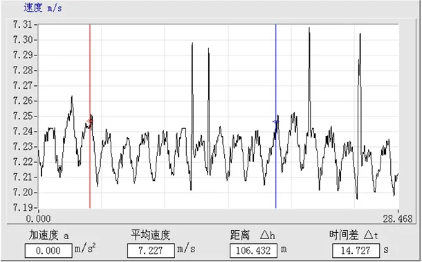 提升机的运行由电控系统控制,使用智能测试仪采集提升机配重上提时的速度曲线和电动机电流曲线,如图 3、4 所示。为了分析提升机zui大速度运行时提升速度和电动机电流的细节变化,通过处理得到局部放大图,如图 5、6 所示。