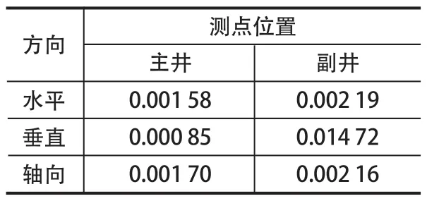 表2 频率 600 Hz 时主井和副井主轴承座驱动端振动幅值比较