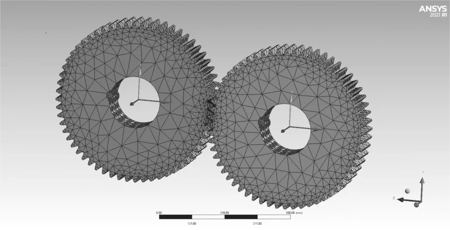 选用 ANSYS/Workbench 中的瞬态动力学模块,对同步齿轮的啮合过程继续动态仿真分析。齿轮啮合分析主要针对齿轮的接触压力以及zui大等效应力特性。设置同步齿轮啮合仿真时间为0.3s,选取28个齿面进行14对接触,接触类型为摩擦接触,摩擦因数为0.2,法向刚度系数为1。根据同步齿轮的运动特性,确保齿轮只能绕 z 轴转动。齿轮瞬态分析约束与载荷施加情况如图8所示。