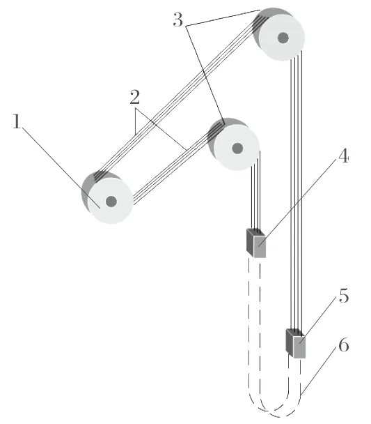 矿井多绳摩擦式提升机是我国矿井领域zui常用的提升装备,主要用于提升人员、设备和物料。该提升系统主要由驱动装置、多根钢丝绳、上下天轮及罐笼等部分组成,其结构如图1 所示。其中,驱动装置由电动机、减速机和联轴器等部分组成,可将电能转变为机械能,实现对罐笼的提升和下放;上下天轮用于对钢丝绳进行改向。提升钢丝绳在天轮位置会出现弯曲变形,钢丝绳的应力会出现突变。