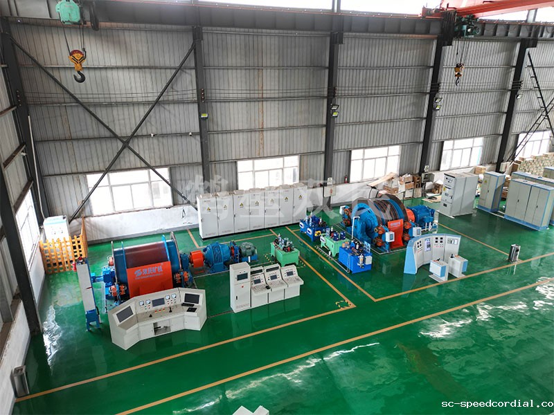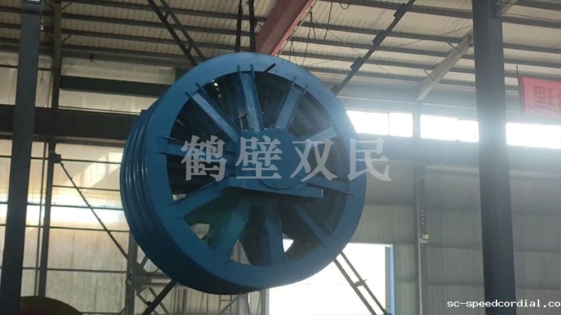 这台多绳摩擦式提升机为,鹤壁市sc-speedcordial生产的落地式多绳摩擦式提升机,型号为:JKMD-2.8×4PI 多绳摩擦式提升机。