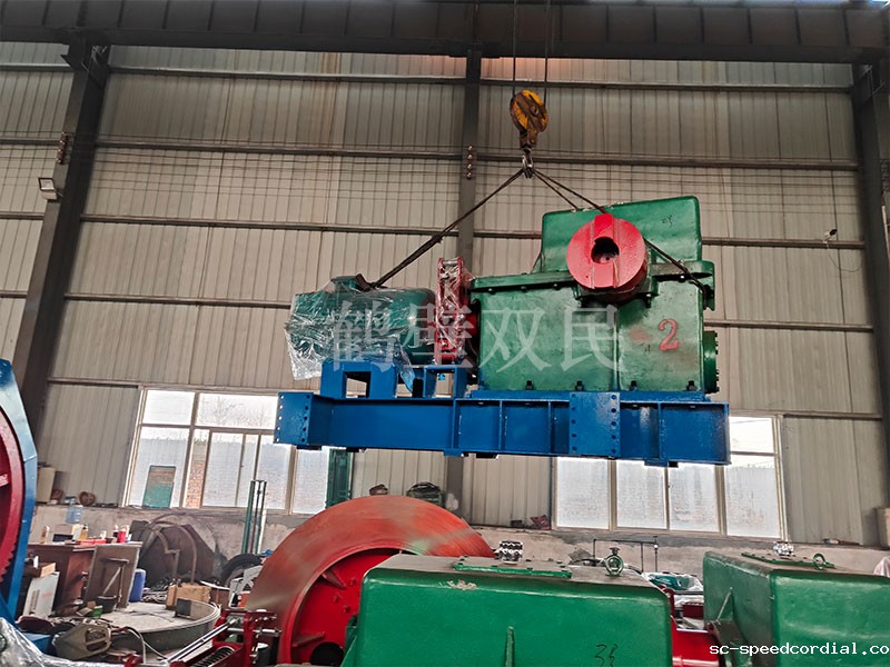 本凿井绞车主要用于煤矿、金属矿和非金属矿竖井井筒掘进时悬吊吊盘、水泵、水管、注浆泵、风筒等掘进设备和张紧稳绳,该绞车系双钢丝绳悬吊。将减速机上的差动手把放在差动位置,若张紧稳绳,可使两根稳绳的张紧力保持相等;