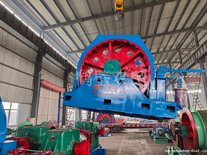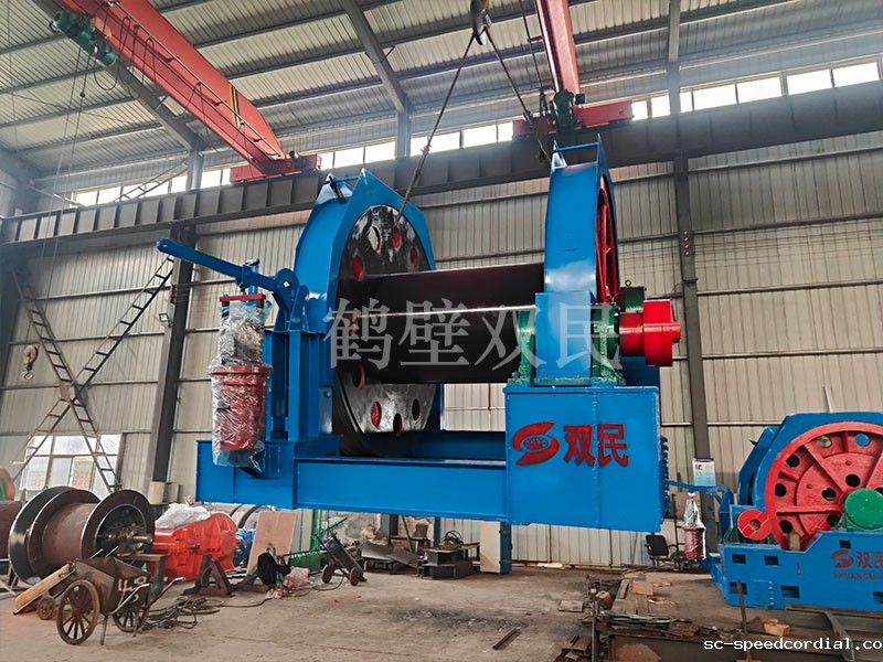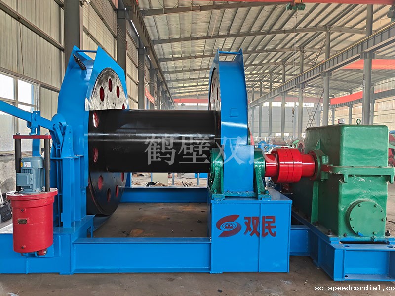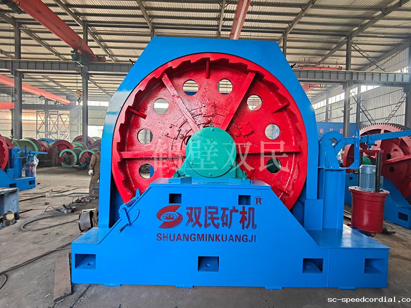 结构特点本绞车主要用于煤矿、金属矿和非金属矿竖井井筒掘进时悬吊吊盘、水泵、水管、注浆泵、风筒等掘进设备和张紧稳绳,该绞车系双钢丝绳悬吊。将减速机上的差动手把放在差动位置,若张紧稳绳,可使两根稳绳的张紧力保持相等;若悬吊水管、注浆管、风筒等管类设备,可保证其被悬吊管类设备与地面保持垂直的状态。如果悬吊吊盘等盘状设备,需将其差动手把放在直通位置,才能实现两绳绳速的一致。