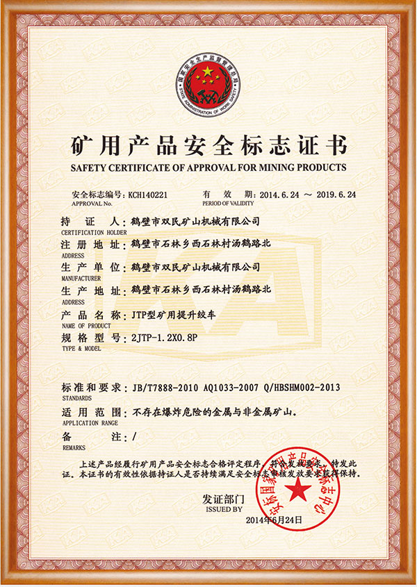 矿用产品安全标志证书